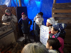 こどもたちは4時間交代で窯焚き当番を回します。当番が変わる度に、どんなことに注意をしながら焚いてきたのか、情報の引き継ぎをします。