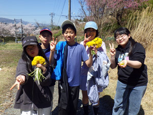 隙間時間に敷地内を散策して、山菜や草花を見つけた1年目のこどもたち。山菜は料理して食べたり、草花は飾ったり押し花にしたりして楽しみました。