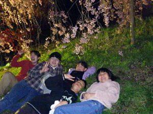 立派な『しだれ桜』が咲いているお家にお邪魔して、夜桜を楽しみました。360度包まれるような桜の景色に、「ずっとここで眺めていたい!」とみんな釘付けです。