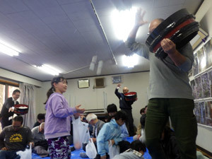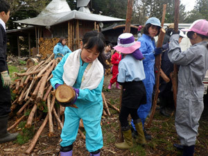 その後は「餅投げ」にも参加。お餅はなんと前日に、稲伏戸地区のみなさんでもち米をつくところから手作りしているとのこと。お餅はみんなで夕食においしくいただきました。