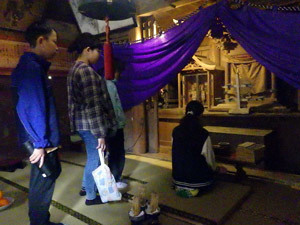 泰阜村の稲伏戸(いなふしど)地区の春のお祭りに呼んでいただき、参加しました。まずは地区の神様にご挨拶。