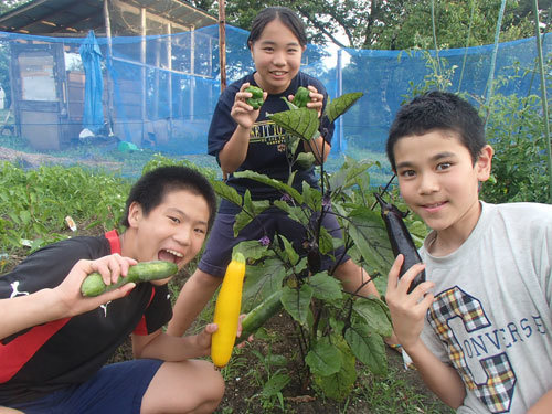 作る野菜はこどもたちが決めていきます。とうもろこし、きゅうり、トマト、すいか、たまねぎ、サトイモ、さつまいも、ゴーヤやこんにゃくいも・・・何を育てるかは毎年違います。毎週の草取りは大変ですが、収穫の喜びは格別です。形や大きさは悪くてもがんばって作った野菜の味にこどもたちは「だいだらぼっちの野菜は甘い!」「味が違う!」と言い、こどもたちは本物の味を知ります。