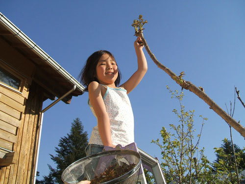 春は近所の里山で山菜をとります。採れたての山菜はそのまま調理。ツクシにヨモギ、タラの芽などをてんぷらにしたりおひたしにしたり…こどもたちのご飯づくりを豊かにしてくれます。