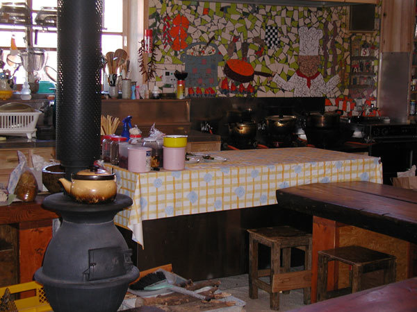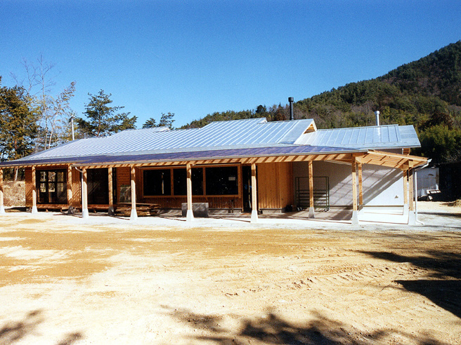 暮らしの学校「だいだらぼっち」のこどもたちが暮らしている大きな家。薪ストーブが中心に置かれたお勝手とこどもたちが走り回れるほどの大広間に分かれ、囲むようにこども部屋が配置されています。どこにいても仲間の声と空気を感じる作りになっています。