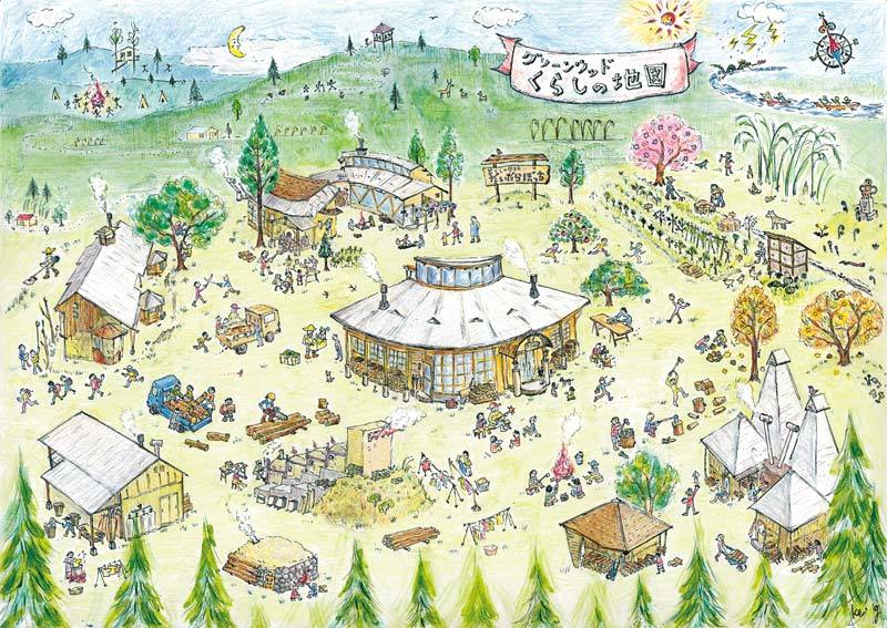 「自然と暮らす」を体現しただいだらぼっちの施設。だいだらぼっちはグリーンウッドの様々な事業を行う施設の中心にあります。分けることなく混ざり合うことで育ちあいの場が生まれます。