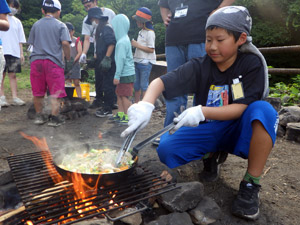 B6組始まりました。食事は自分たちで作るのが山賊。族の仲間と協力してごはんを作りました。