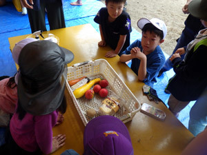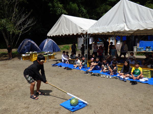 村の方からスイカをいただくことができ、スイカ割りをしました。たくさんのこどもたちが挑戦して大盛り上がりでした。