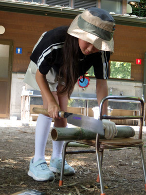 工作では名札づくりが盛り上がりました。のこぎりで切ったり、穴を開けたり丁寧に作りました。