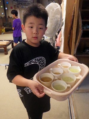 火おこしで調理中の仲間のためにお茶を運びます。自分ができることを持ち寄る。これが山賊キャンプです。