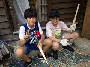 アジトの近くにある大峰山に登山に行ってきたこどもたち。帰ってきた手には、大きな枝に、たくさんの松ぼっくり。聞くと「夜ごはんの火起こしに使う!」だそうです。遊びながら暮らしのことを考えるなんて!もうすっかり山賊です。