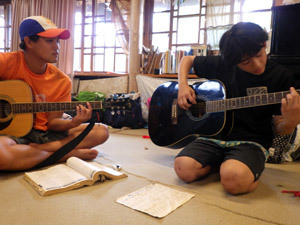 落ち着いたチャレンジができるのもスーパーの魅力。長老たちの弾くギターを聞いているとなんだか弾きたくなってくる。続ければ必ず弾けるようになるよ!頑張って!