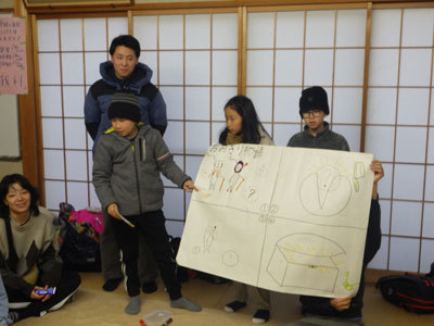 開拓組は、これまでやったことがない遊びも開拓します!この日は早朝から大喜利大会をやりました。実行委員さんがみんなで楽しめる大喜利を考えてくれました。