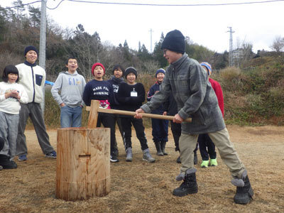 餅つきもやりました。年の数だけ餅をついて、最後は新年の抱負を述べます。美味しいお餅が完成!
