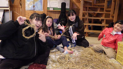 今年刈り取った稲を使ってお正月飾りをつくりました。一締め一締め編むごとになんだかお正月が待ち遠しく感じてきます。
